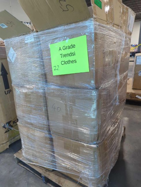 (1) Pallet - Various clothing from Trendsi (Labeled grade A): Jeans, dresses, sweaters, shirts, and more