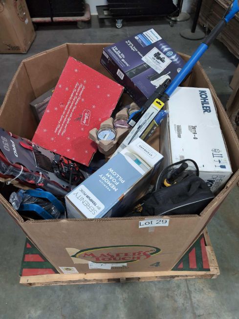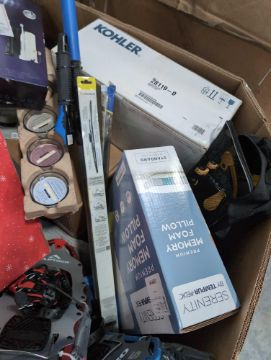 Snowbrush, Pairs of snow shoes, Kohler bide seat, pillow and more ( customer Returns)