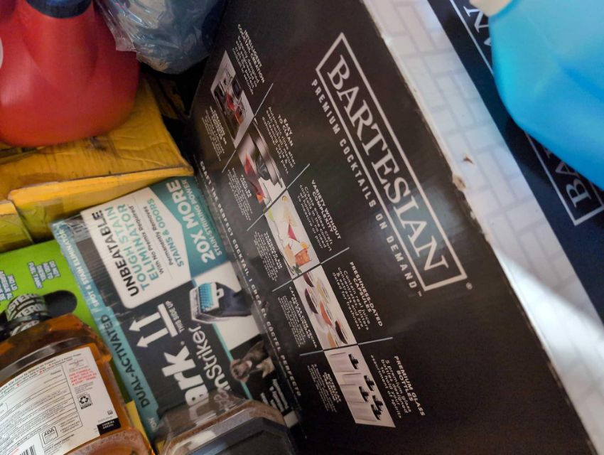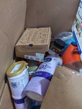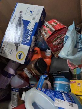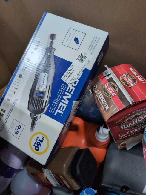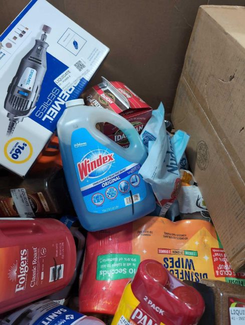 Big box store in a box:Folgers coffee, Windew, dremel tool, skechers, Aveeno, BBQ sauce, dressing, Pam, windex, coffee mat, sunjoe, enfamil and more