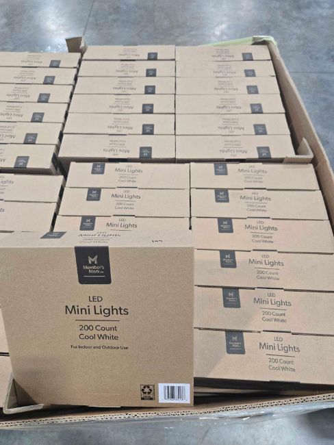 Approximately one hundred and forty four boxes of members mark mini led lights two hundred per box